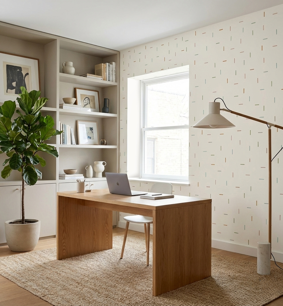 O Papel de Parede Tracinhos é a tradução do minimalismo para o seu ambiente. Com pequenos traços coloridos em uma paleta suave e rítmica, ele traz alegria de forma discreta e moderna. É o design ideal para quem busca uma estética leve, que ilumina o espaço sem sobrecarregar o olhar